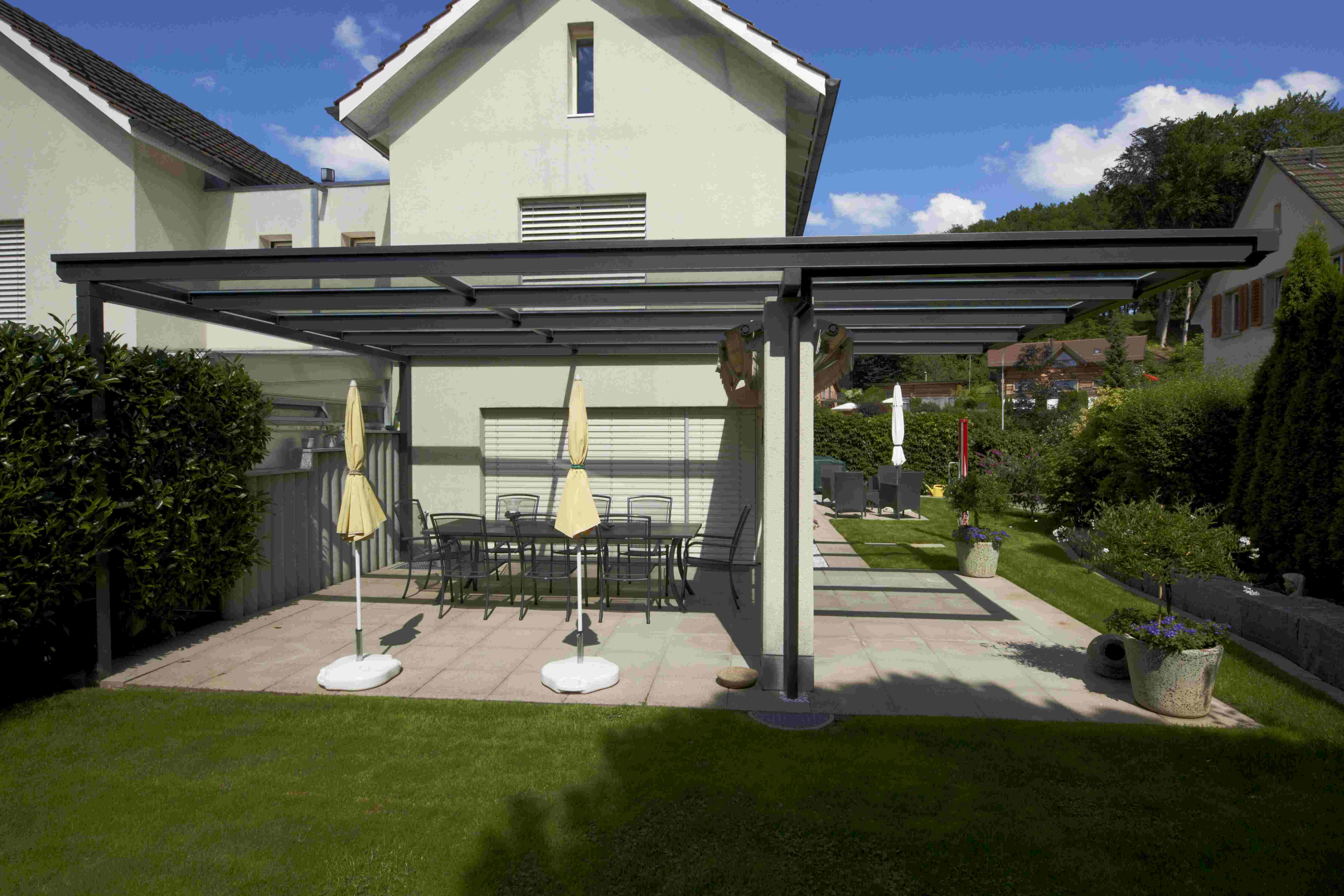 Ihnen bietet sich ein breites Spektrum an Optionen und Kombinationen von verschiedenen Elementen, um Ihre persönliche Vision zu verwirklichen. Entdecken Sie Vordächer und Überdachungen aus Glas, die besonders in lichtdurchfluteten Konstruktionen zur Geltung kommen können. Wählen Sie aus freistehenden oder fest montierten Überdachungen, hochwertigen Seitenteilen oder Vordächer für einzelne Türen und Garagen Ihre ideale Kombination. Belegen Sie ihr Vordach mit einer PV-Anlage und werden so zum Stromproduzenten!